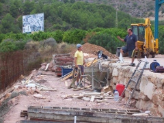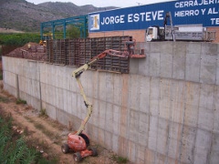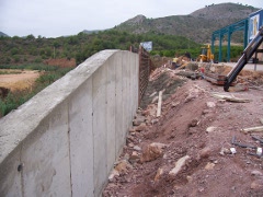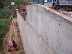 Muro de hormigón armado de 12 metros de altura y mas de 50 metros de largo. Estructura realizada junto al cauce del rio.