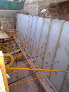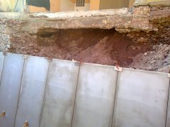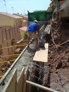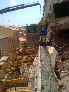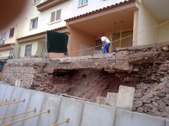 Muro de contención hormigón armado en residencial.